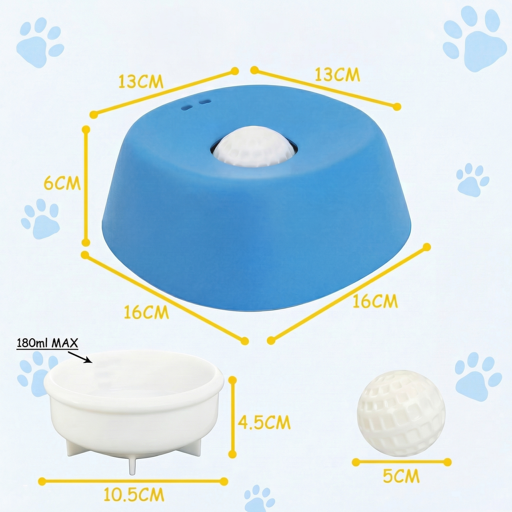 The rolling ball mechanism sits in the centre of the bowl, controlling the flow of food. Instead of gulping, your dog has to lick around and under the ball to reach their meal.